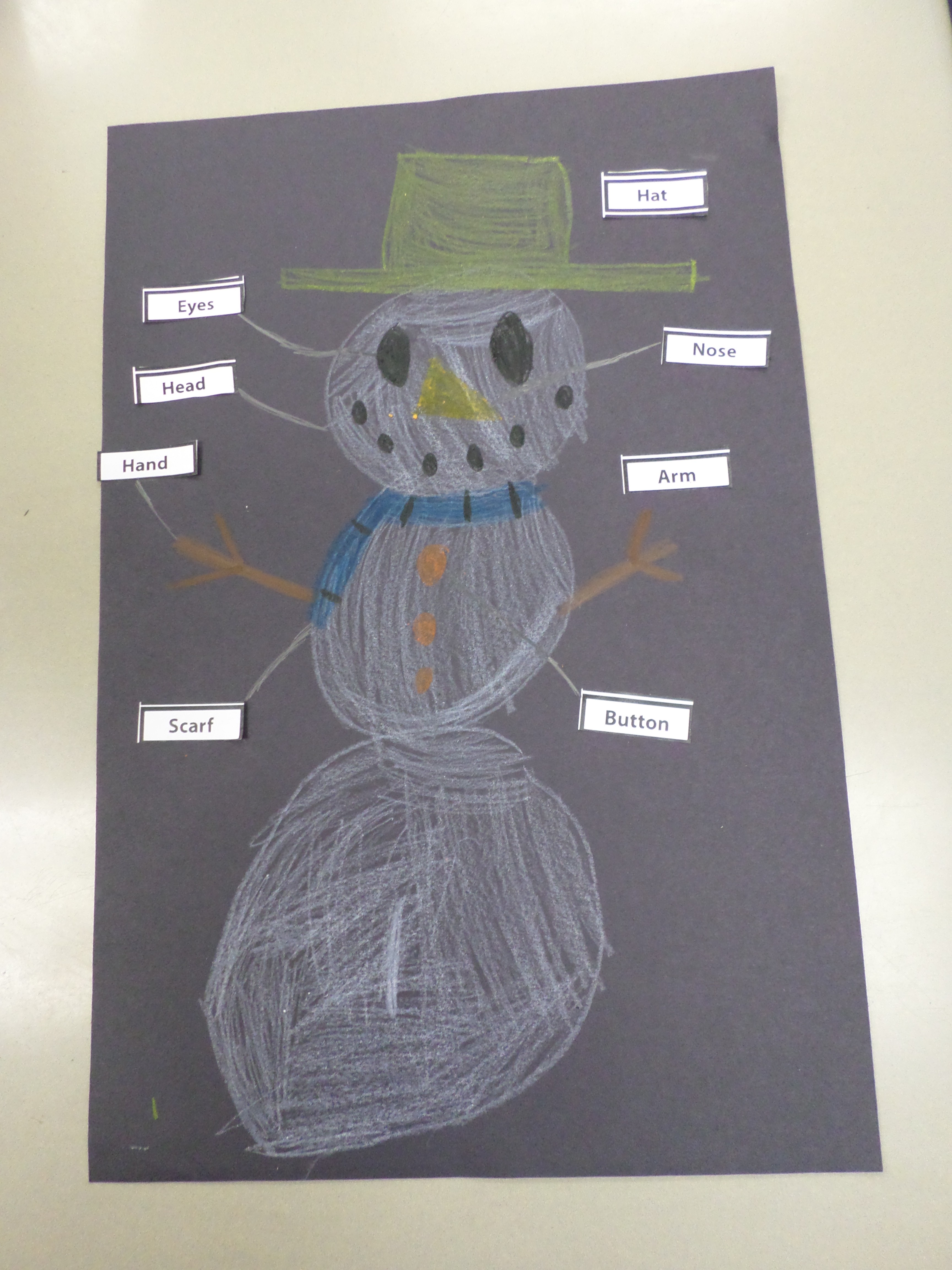 The first activity was to label a snowman. Perfect! We started off with me giving verbal “how to draw your snowman” directions. It turned out to be a great listening activity. Then I gave them the labels which they used their independent reading skills to correctly place them. They really had a lot of fun doing it because they had an investment in the snowman they were labeling.